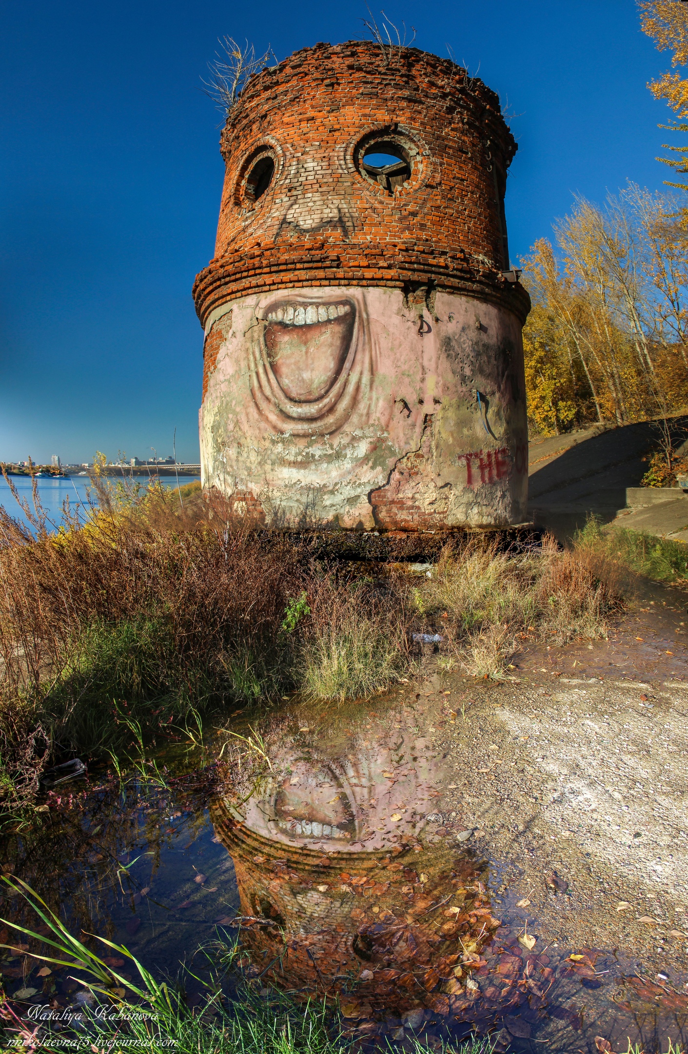 9. На этом заброшенном здании тоже есть странные картины. Кстати, кто решит там рядом походить, ходите осторожнее, там полно открытых люков. Может, там раньше решетки были, не знаю. Сейчас открытые люки, на дне вода.